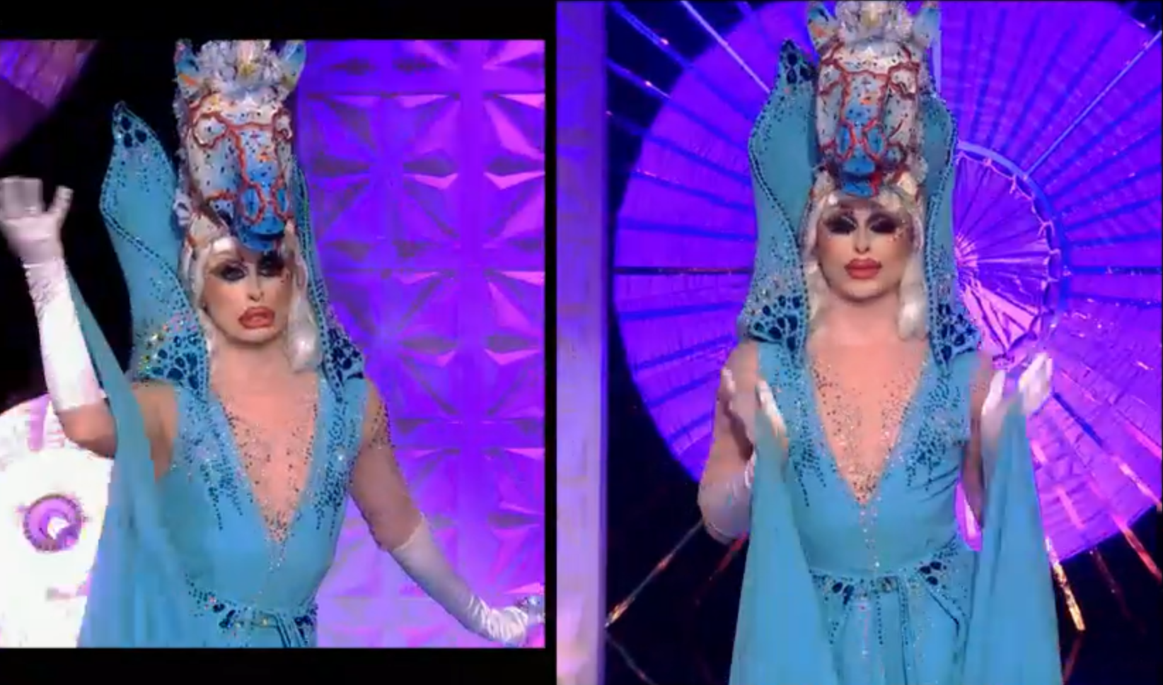 Back in the workroom, conversation turns to bullying in school. Blu and Crystal admit they were ostracized and then Divina brought up Section 28, created by Margaret Thatcher’s government as a way to eliminate discussion of homosexuality in schools. I think that the LGBT+ have come so far in the twenty years since Section 28 was revoked but the hate is still there between students, as anyone knows who was in that position. This enforces that hate is taught and I hope that young people can feel in the future that they can express themselves in a way that doesn’t make them a target. As a side note, Divina’s talking heads are probably one of the most informative and honest ever on the show.