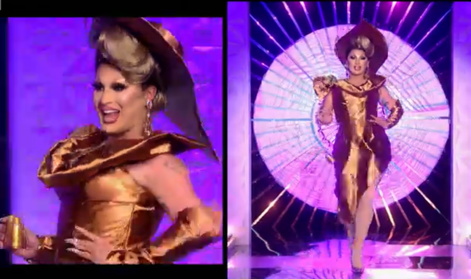 The Vivienne is instantly critiqued on her lack of presence in the challenge and forgetting her words, you can tell it has really affected her. Cheryl is emotional on stage because of the challenge but is praised on the power she brought to the challenge, even though her outfit came under heat. Crystal was really praised on her outfit but she completely faded to the background. All three members of The Frock Destroyers were praised for their outfits, their performance in the challenge and for how they completely came together as a group.