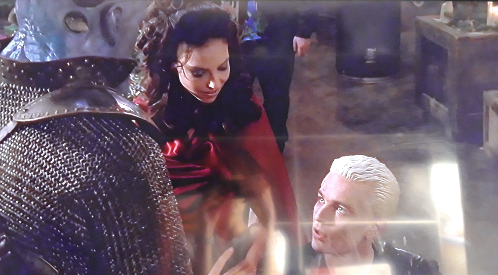 Drusilla is at the forefront of this episode, following her powers being restored in the second part of “What’s My Line”. It is great to see Juliet Landau being able to show the full range of this dangerous adversary for the Scooby Gang; her meltdown at the sight of an incorrect flower arrangement and her gleeful smile when deciding whether to gouge out the eyes of a fellow vampire were brilliant scenes in themselves. It is very much her episode though, and the actress takes her opportunity with open arms. In contrast, Spike (James Marsters) is now in a wheelchair after being trapped under rubble. Though he has his dry sense of humour, viewers can tell that he is incredibly frustrated to not be running the show anymore and that though he loves Drusilla, he wishes that the positions of power reverted to him being in control again.