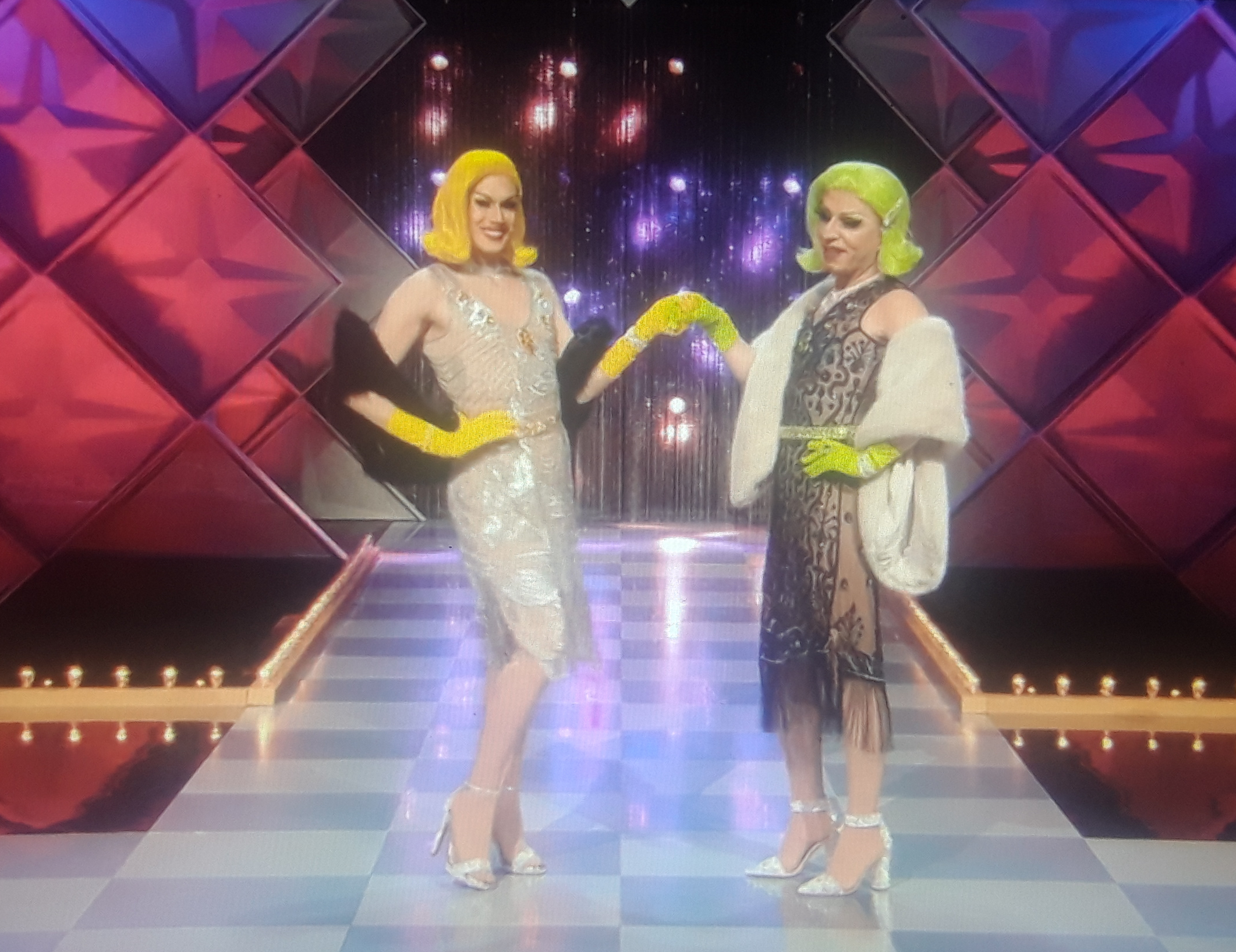 Backstage, Rita Baga is determined to stay true to her drag style in spite of the critiques, a fact that Jimbo gleefully pounces on. A slightly hurt Lemon takes aim at Scarlett for an outfit that she says would be ripped off her if she tried to wear it – honestly, I can see where she is coming from, but the make-up job of her partner wasn’t great so I think Lemon may be in big trouble for the first time since the first week, which in itself is testament to how much she picked herself up after that week.