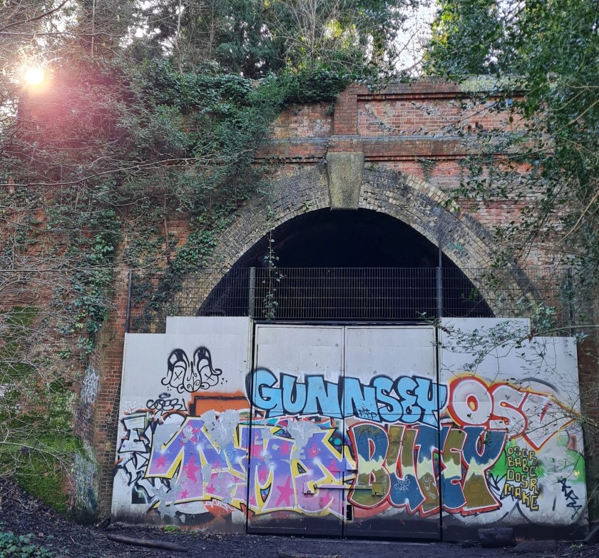 Though the station was completely demolished in the early 1960s, the footprint of the grand station can still be seen by heading down Farquhar Road. Large arches form part of the retaining wall down one side, and an ornate subway used to be accessible, which would have taken passengers directly from the station to the Crystal Palace, without needing to spend energy going up and down the hills on either side of the main road. The subway is currently being renovated by the Friends of Crystal Palace Subway (cpsubway.org.uk) so it can be enjoyed by future generations – images on their site show the grandeur of this structure, and I look forward to exploring it one day. The most exciting remnant of the Crystal Palace (High Level) station for me is the southern portal of the 401m Paxton Tunnel, which can still be seen, now in the corner of a housing estate – though boarded up, you can see that the quality and design features of the High Level station extend to the brickwork of this tunnel portal.