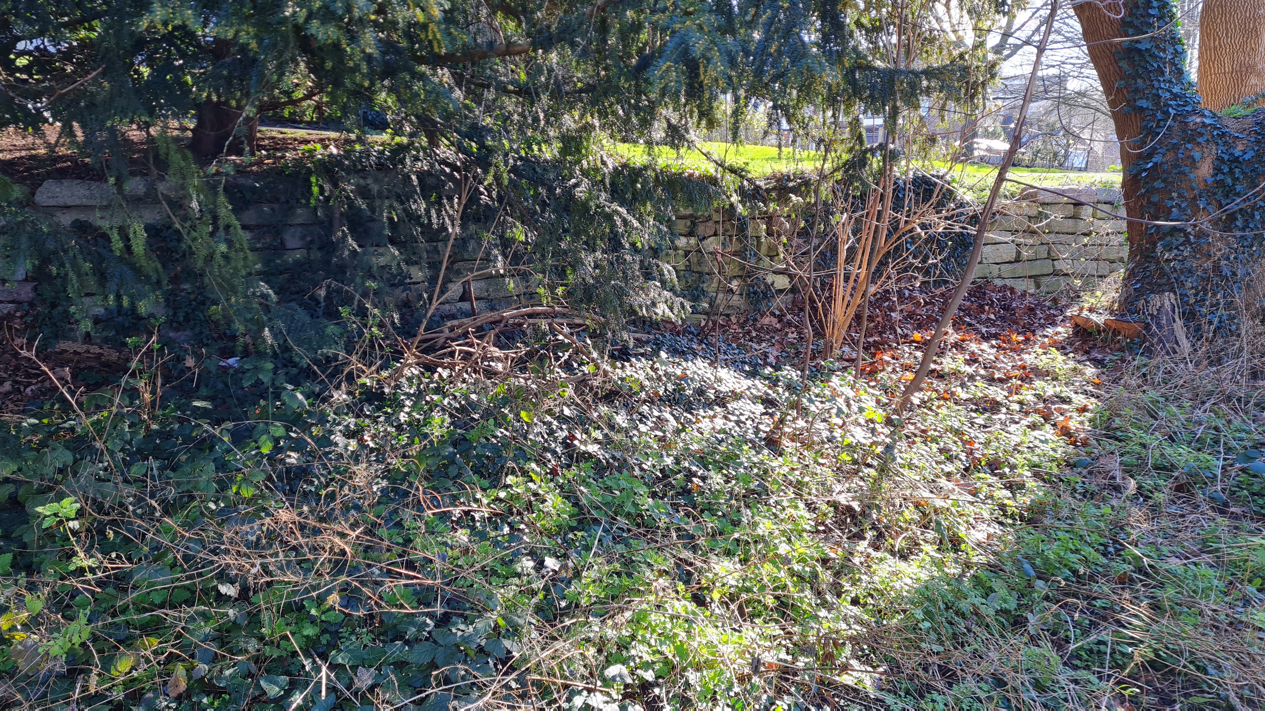 Unlike Crystal Palace (High Level), Honor Oak was the first station in the area to take the name, which meant a station built 20 years after had to take an alternative name, that being Honor Oak Park, which survives to this day. As the footprint of the station is situated in the back of a large housing estate and research informed me that there was nothing left of the crude wooden platforms and small shelters, I did not investigate further, aside from taking a picture of where I believe the railway went through. It was at this point that the guide I was following told me to end the walk and head to Honor Oak Park, but I decided to head on to where the line would have connected with the surviving line just south of Nunhead station. The railway would have headed through what is now the lovely Brenchley Gardens. Taking the much muddier route led me along what I believe was the old alignment, as suggested by the old looking masonry along the side of the path. This was the last walkable part of the branch line, but I followed the road running parallel to the still surviving raised embankment, part of a housing estate. Approaching a road junction, I was happy to find remaining brickwork which would have formed part of the bridge over the road, painted by the nursery which stood next to it. I followed the path next to the embankment, which was built on by yet another housing estate, until I faced the dead end of a private gated estate, which would have been where the branch line met up at Nunhead, at which point I finished my walk.